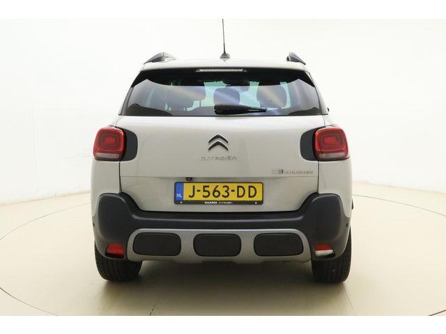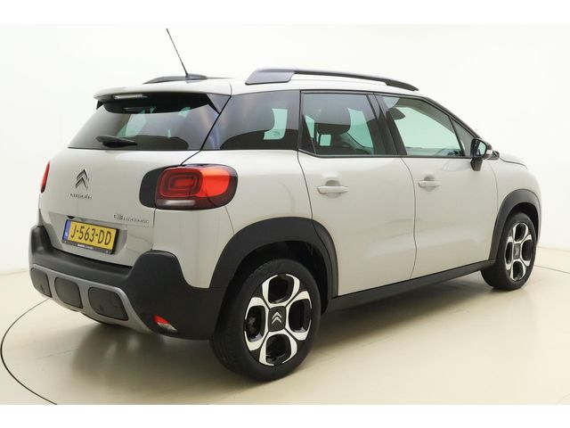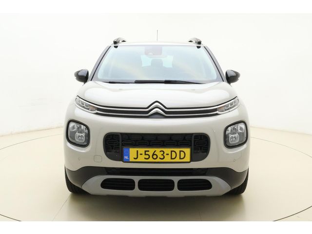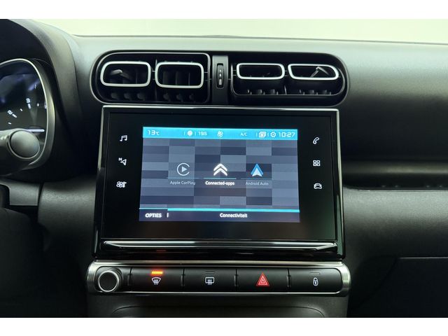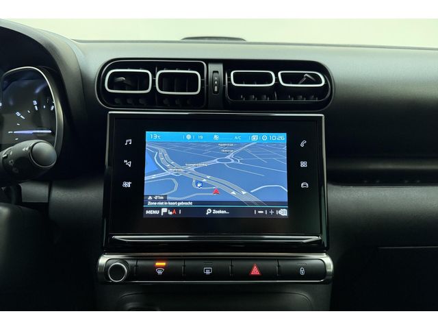 Een vergeten muurtje, een verborgen paaltje? Dat gebeurt niet meer, dankzij de achteruitrijcamera. Vanaf elke plek contact maken met deze auto: dat kan met behulp van remote services, die u simpel activeert met uw smartphone. Laat u onderweg niet afleiden, de bediening van het audio-installatiesysteem en ook het full map navigatiesysteem gaat met knoppen op het stuur en met spraak. Natuurlijk is de audio-installatie voorzien van DAB-ontvangst. Telefoonaccu in het rood? Laad 'm simpel op met de draadloze oplaadmogelijkheid voor telefoons. Deze Citroen C3 Aircross is voorzien van sensoren aan de achterzijde om een achteropkomend verkeer waarschuwing te geven als de afstand tussen u en een achterligger te klein is. Ook automatische airconditioning, regensensor, cruise control, keyless entry, automatisch dimmende binnenspiegel en lederen stuur zijn aan boord.