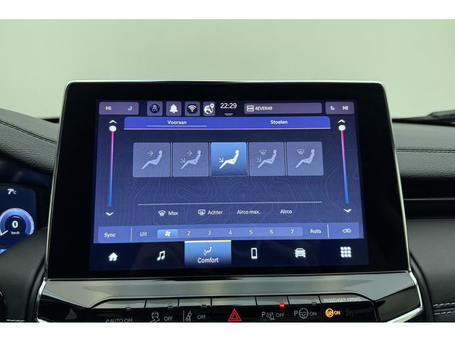 Als bestuurder van deze Jeep bent u nooit alleen. U wordt onderweg bijgestaan door technologische hulpmiddelen die samen met u de weg in de gaten houden. Als het nodig is, grijpen ze zelfs in, door te remmen of bij te sturen. In het instrumentarium laat de verkeersborddetectie de actuele verkeersborden zien. Het Lane-keeping systeem zorgt dat u mooi binnen de lijntjes blijft. Ongemerkt buiten de rijstrook komen is er niet meer bij. Vermoeidheidsherkenning is een systeem dat met verschillende sensoren tekenen van vermoeidheid bij de chauffeur waarneemt. Deze krijgt tijdig een waarschuwing, wat ongelukken kan voorkomen. Met voorzieningen als hill hold functie, frontale botsbescherming en bandenspanningcontrolesysteem, bent u altijd veilig onderweg.