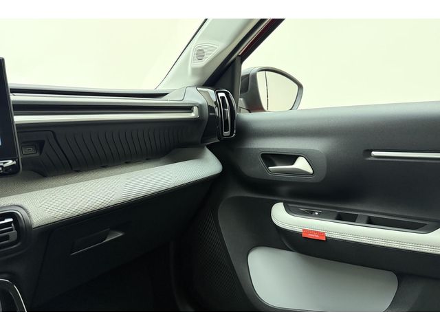 In de Citroen Ë-C3 heeft uw veiligheid en die van uw omgeving prioriteit. Veiligheid voor alles, ook als u rij- en routeinformatie wilt aflezen. De head-up display projecteert de gegevens op de vooruit en u kunt gewoon voor u blijven kijken. Onderweg fungeert de verkeersbord-detectie als het ware als uw bijrijder en attendeert u op de verkeersborden langs de weg. Een camera houdt de juiste koers binnen de rijstrook in de gaten en het Lane-keeping systeem corrigeert bij afwijkingen. In deze Citroen vinden we verder een hill hold functie, vermoeidheidsherkenning, autonoom remsysteem en bandenspanningcontrolesysteem.
