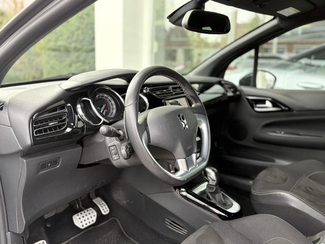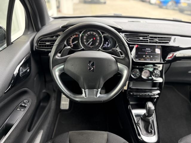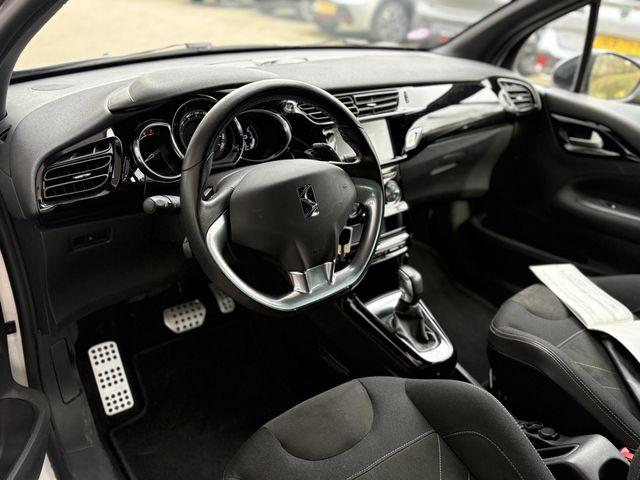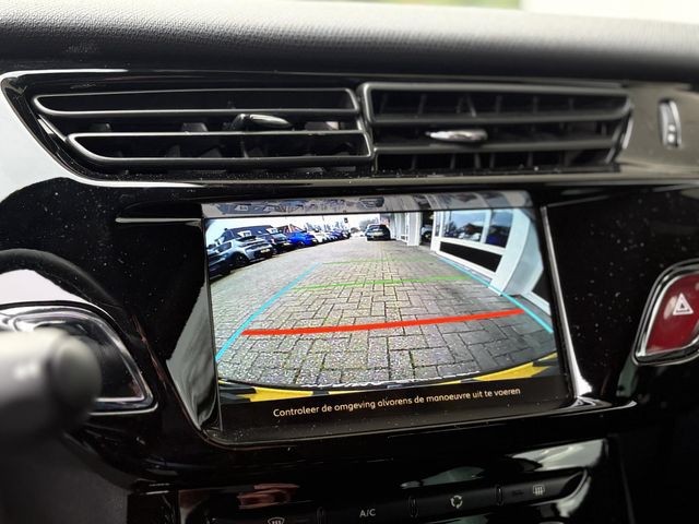 Met behulp van de achteruitrijcamera kunt u zo strak inparkeren als u maar wilt! Spraaksturing is onderdeel van de uitrusting van deze auto. Met uw stem kunt u de belangrijkste voertuigfuncties bedienen. Vanaf elke plek contact maken met deze auto: dat kan met behulp van remote services, die u simpel activeert met uw smartphone. Er is geen bestemming die het aanwezige full map navigatiesysteem niet kent. Dat rijdt lekker! Deze DS 3 is voorzien van sensoren aan de achterzijde om een achteropkomend verkeer waarschuwing te geven als de afstand tussen u en een achterligger te klein is. De uitrusting van deze auto is met sportstuur met schakelpaddels, DAB ontvangst, cruise control, automatisch dimmende binnenspiegel, centrale deurvergrendeling met afstandsbediening en boordcomputer behoorlijk compleet.