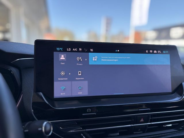Het digitale dashboard vertelt u alles wat u wilt weten voor een slimme, comfortabele en veilige rit. Dankzij de 360 graden camera kunt u zowel de voor- als achterzijde van het voertuig in het oog houden, wat bijdraagt aan een veiligere rijervaring. Adaptive cruise control houdt de ingestelde snelheid vast en houdt automatisch afstand tot uw voorligger. Vanaf elke plek contact maken met deze auto: dat kan met behulp van remote services, die u simpel activeert met uw smartphone. De bediening van het audiosysteem en het full map navigatiesysteem gebeurt met knoppen op het stuur en als u wilt zelfs met uw stem. De audio is overigens voorzien van DAB-radio voor een altijd heldere ontvangst. Deze auto is voorzien van automatische airconditioning, draadloos opladen, regensensor, keyless entry en automatisch dimmende binnenspiegel.