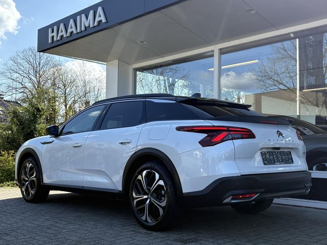 Een keurige auto, dat is deze Citroen C5 X, die 3261 kilometer heeft gelopen. De hybride motor van deze Citroen C5 X zorgt dat u opvallend veel minder brandstof verbruikt dankzij de ondersteuning van de elektromotor met z'n eigen accu. En die laadt u al rijdend bij. Slim en zuinig! Met de elektrisch bedienbare achterklep kunt u handsfree bij de kofferruimte komen. En daarna prinsheerlijk plaatsnemen in het lederen interieur. De verwarmbare voorstoelen zijn een heerlijke extra optie, waarmee u uzelf en uw bijrijder een groot plezier doet. De comfortstoelen van deze Citroen C5 X staan bekend om hun goede zithouding. Nooit meer koude handen of koude vingers in de auto. Stuurverwarming zorgt ervoor dat het stuur behaaglijk warm aanvoelt. Bij de zeer complete uitrusting van deze auto behoren ook 19 inch lichtmetalen velgen, LED koplampen, adaptief dempingsysteem, geluidsisolerende ramen, LED-achterlichten en verstelbare lendensteunen.