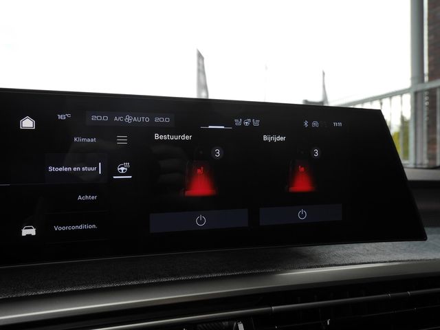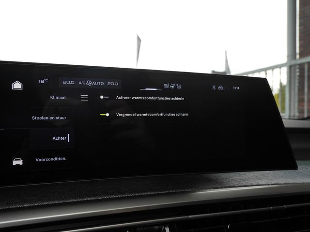 Hij levert uitstekende prestaties en doet dat met zorg voor het milieu. Maar tegelijk is de Peugeot e-5008 ook gewoon een auto die u volop ruimte en comfort biedt. Het aantal kilometers dat u op een acculading kunt rijden, is ruimschoots genoeg voor de gangbare dagelijkse ritten, en het opladen kan in de meeste gevallen 's nachts gebeuren. Zelfs op de koudste dagen zorgen de stoelverwarming met massagefunctie, stuurverwarming en verwarmbare achterbank voor een comfortabele rijervaring. Zit u goed? Nou, zeker wel, met de ergonomisch comfort stoelen! De bagageruimte is toegankelijk via een comfortverhogende elektrische achterklep. Supergemakkelijk brengt u de kids naar de uitwedstrijd of een feestje (lekker hoor, die derde zitrij!). U wordt in deze auto ook getrakteerd op 19 inch lichtmetalen velgen, Full LED koplampen, in delen neerklapbare achterbank, LED-achterlichten, verstelbare lendensteunen en snelheidsafhankelijke stuurbekrachtiging.