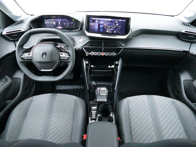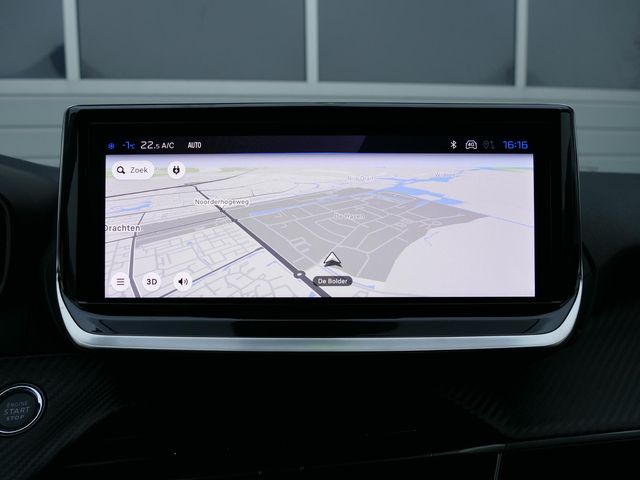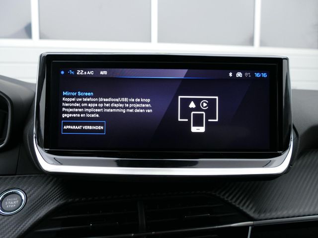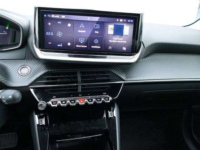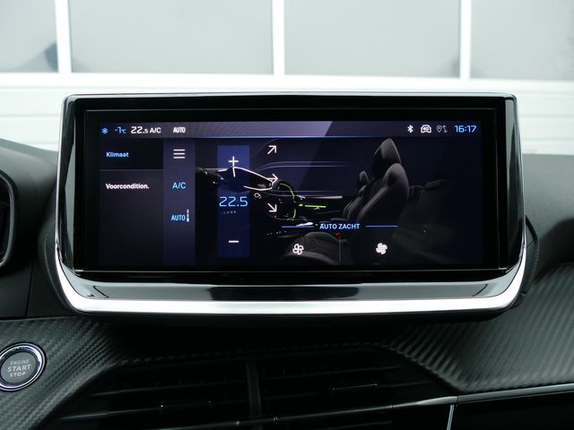Zoals u mag verwachten van deze Peugeot e-208 is hij uitgerust met een reeks aan actieve veiligheidssystemen. Verkeersborddetectie herkent tijdelijke en permanente verkeersborden langs en boven de weg. Het Lane-keeping systeem let constant op en waarschuwt of corrigeert als u onoplettend over de lijnen van de rijstrook gaat. Forward collision warning waarschuwt bij een dreigende aanrijding met een voorligger. De auto is ook uitgerust met dodehoekdetectie, brake assist, vermoeidheidsherkenning en bandenspanningcontrolesysteem.