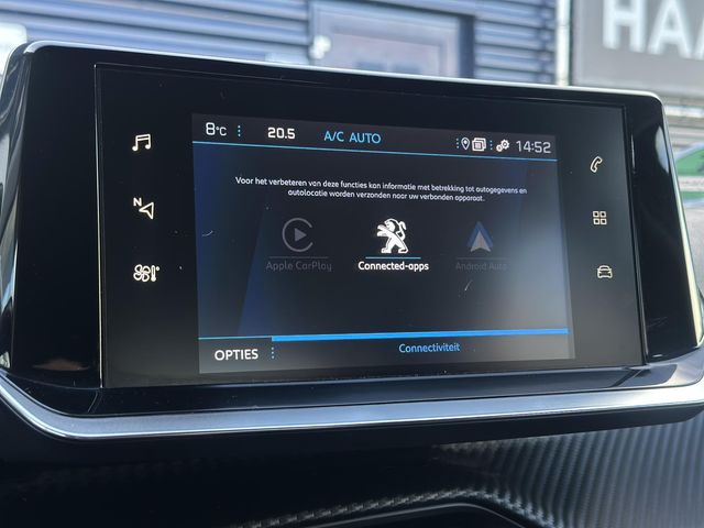 Slim, efficiënt, veilig en goed geïnformeerd rijden? Het digitale dashboard vertelt u alles wat u wilt weten. Met de achteruitrijcamera ziet u wat er achter de auto gebeurt. Zo rijdt u moeiteloos achteruit. Als u regelmatig met een aanhanger of een fietsendrager op pad bent, is de afneembare trekhaak een praktische extra. Uw smartphone is tegenwoordig de sleutel tot heel veel. Ook voor deze auto. Remote services, noemen we dat. Waar u ook bent, contact houden is een eitje. Nooit meer de weg kwijt: daarvoor zorgt het onboard full map navigatiesysteem. Deze Peugeot is voorzien van automatische airconditioning, DAB ontvangst, regensensor, cruise control, automatisch dimmende binnenspiegel en lederen stuur.